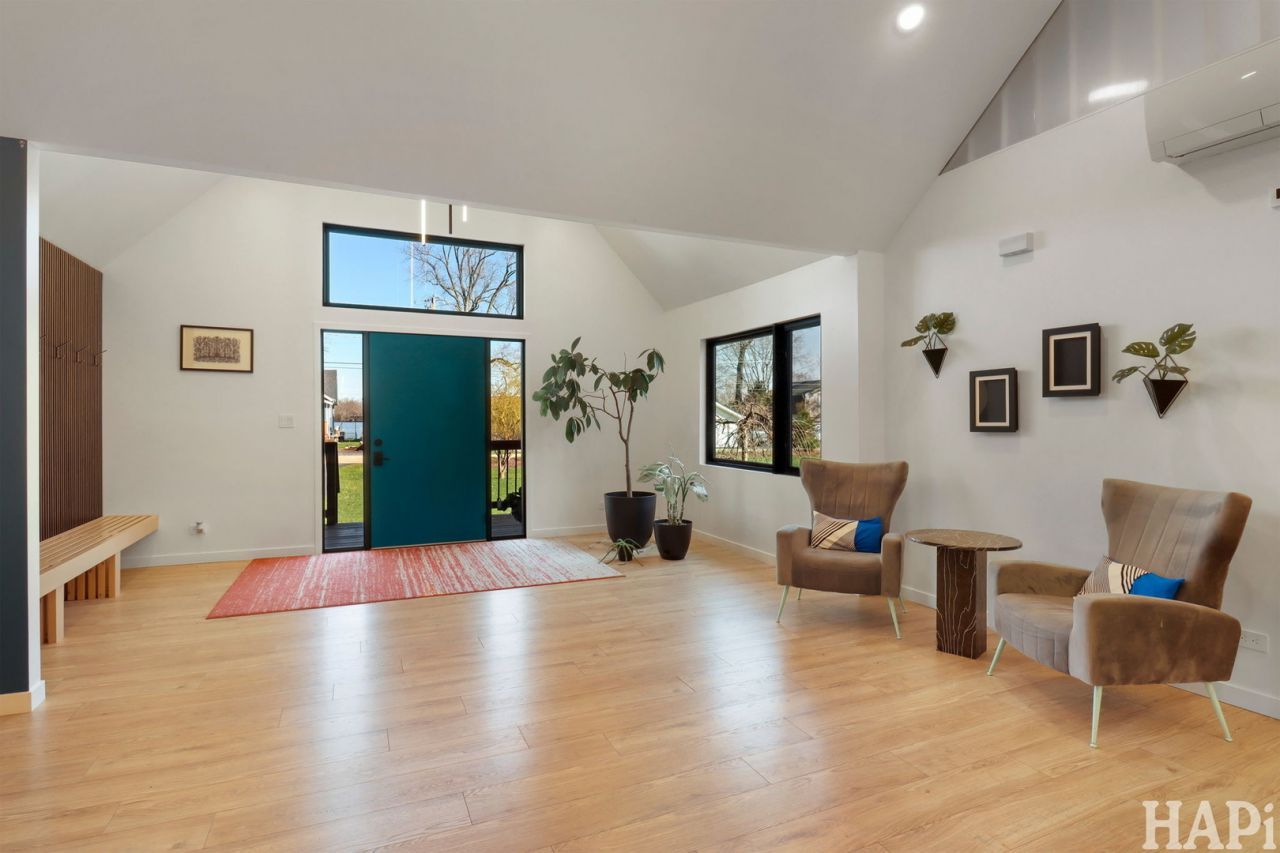 Completely renovated & reimagined in 2021, this stunning 4110 square foot home on .88 acres offers the perfect blend of thoughtful design, modern upgrades, and one-of-a-kind character. Featuring six bedrooms and 2.5 bathrooms, every inch of this home has been meticulously renovated with new 3 area zoned HVAC, plumbing, electrical, insulation, flooring, kitchen, bathrooms, mudroom, and a beautiful screened porch. Step inside to discover elevated finishes throughout, including striking feature walls, a handcrafted media tower with abundant storage, and heated flooring across the living room, foyer, kitchen, and dining areas-bringing both comfort and luxury to everyday living. The kitchen and living spaces are designed for both functionality and style, while the primary suite offers a true retreat with a zero-threshold luxury shower and heated bathroom floors. Custom closet organization systems in three bedrooms provide exceptional storage and organization. Upstairs, a versatile loft and two additional bedrooms offer flexible living arrangements-ideal for a home office setup, guest quarters, or multigenerational living. One of the home's most unique features is a hidden storage space, accessed by the push of a button from the dining room or behind the mirror of the primary bathroom. Perfect for hiding your valuables. The property also includes MASSIVE 35' X 43' garage with stair access to an unfinished upper level, ideal for storage, hobbies, or future expansion, along with a second detached garage for additional flexibility. A new fence and a screened porch with hot tub enhance privacy and outdoor enjoyment. Located adjacent to Petersen Park, enjoy direct access to green space along with seasonal music festivals and community events right outside your door. This is truly a one-of-a-kind property-thoughtfully designed, extensively upgraded, and impossible to replicate.